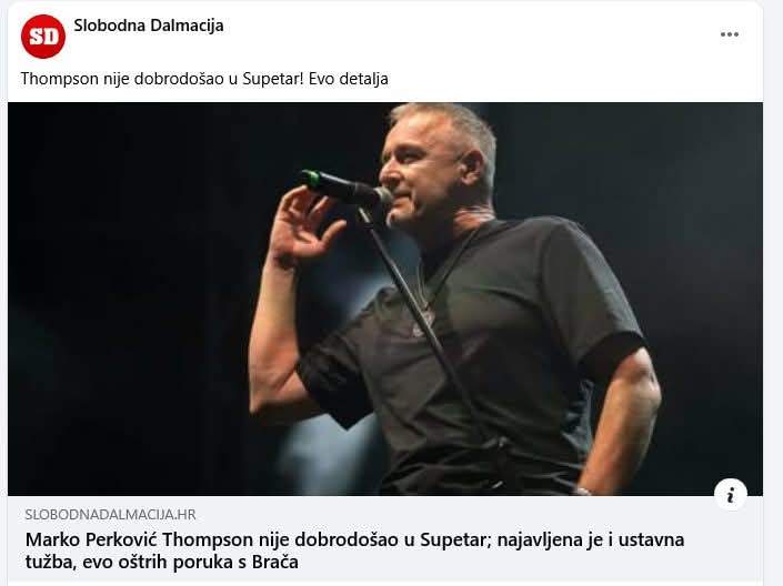 U posljednje vrijeme svjedoÄimo javnim istupima gradonaÄelnice Supetra Ivane MarkoviÄ o navodnom koncertu M. P. Thompsona na BraÄu. NaglaÅ”avamo da Thompsonov tim, kao ni sam izvoÄaÄ, nisu tražili termin niti trenutno iskazali interes za koncert. Zbog toga je zaista nevjerojatno ovo niÄim izazvano dodvoravanje svojim istomiÅ”ljenicima i iskazivanje mržnje kroz izjave o dogaÄaju koji u planu nije ni postojao.