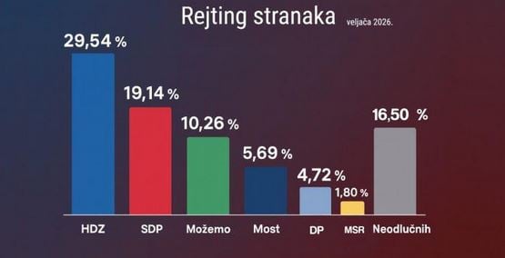 Tako je i ovaj mjesec postavljeno pitanje tko bi, prema miÅ”ljenju svih ispitanika, imao veÄe izglede sastaviti novu vladu da su na dan ispitivanja zavrÅ”ili izbori. HDZ-ovu koaliciju u prednost stavljaĀ 56,68 posto ispitanika,Ā a SDP i MožemoĀ 20,85 posto.