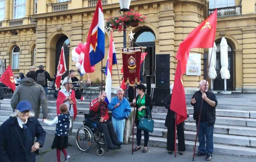 I dok sam u čudu gledao taj skup iz polusvijesti su me u trgli taktovi „Internacionale“ koje su s ushićenjem izvodile neke mlade djevojke. Sa strane ih je ozarenog lica s velikim oduševljenjem promatrao gospodin Zoran Pusić. Među 200-tinak okupljenih ugledao sam i gospodina Ivu Josipovića u blizini kojeg sam opazio i jedini stijeg Republike Hrvatske. Taj se stijeg po ničemu nije uklapao u koncepciju ovog skupa. Svi govornici po više puta spominjali su svog druga Tita što je bilo pozdravljano frenetičnim aplauzima tako da sam se uplašio i od same pomisli kako će se odjednom odnekuda pojaviti na bijelom konju u bijeloj maršalskoj uniformi. Bojeći se da neki još nisu saznali kako je Broz odavno umro pokušao sam to priopćiti jednoj sudionici skupa. Prostrijelila me je očima prepunim dobro poznate antifašističke mržnje tako da su mi se smrzni i đonovi na cipelama. Ne daj Bože da poviče revizionist, klerofašist ili ustaša. Tada sam se sjetio njihovih čuvenih parola „I poslje Tita Tito“ i „Zauvek s nama Tito“ te svog davno shvaćenog saznanja kako je nemoguće promijeniti njihov nakaradni mentalni sklop. Ti zombiji bi me rastrgali u pravoj antifašističkoj maniri i po dobro poznatom obrascu bacili u neku rupetinu. Ne bi me mogao spasiti ni čelnik zagrebačkog SDP-a koji je također došao evocirati uspomene na „slavni partizanski antifašizam“.